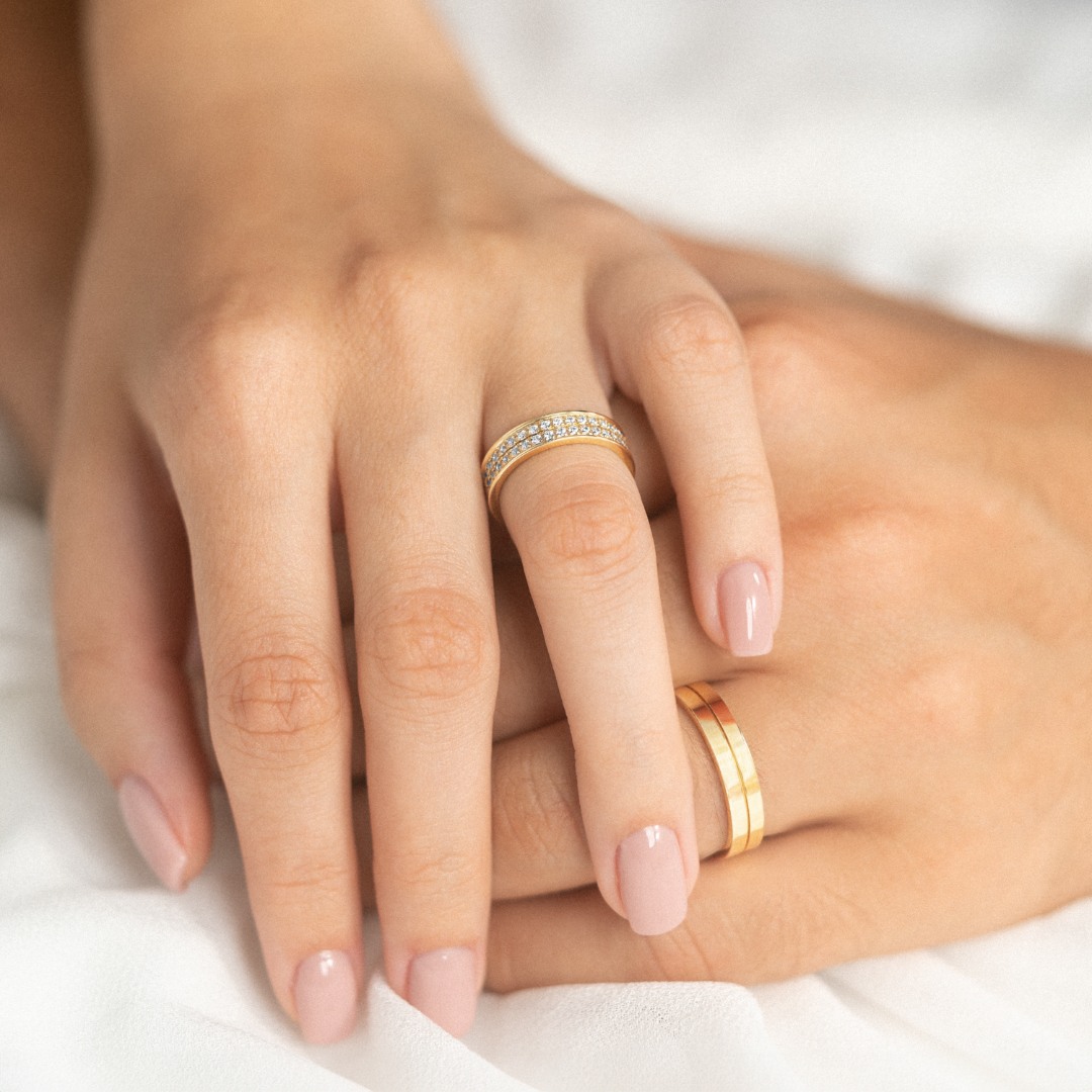 Colecția Harmony reprezintă o selecție deosebită de verighete, realizate cu grijă de către maeștrii bijutieri STIL Diamonds, pentru a se potrivi gusturilor și preferințelor fiecăruia. Această colecție vă permite să creați verighetele ideale, personalizând fiecare aspect al acestora, de la profilul și lățimea verighetei, la caratajul și culoarea aurului, finisajul mat sau lucios, numărul și poziția pietrelor sau fontul pentru mesajul gravat pe verighete.
