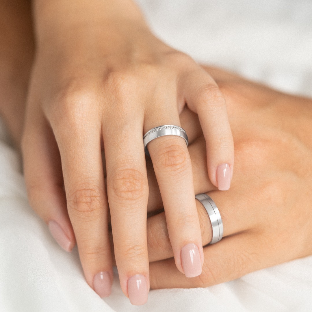 Colecția Harmony reprezintă o selecție deosebită de verighete, realizate cu grijă de către maeștrii bijutieri STIL Diamonds, pentru a se potrivi gusturilor și preferințelor fiecăruia. Această colecție vă permite să creați verighetele ideale, personalizând fiecare aspect al acestora, de la profilul și lățimea verighetei, la caratajul și culoarea aurului, finisajul mat sau lucios, numărul și poziția pietrelor sau fontul pentru mesajul gravat pe verighete.